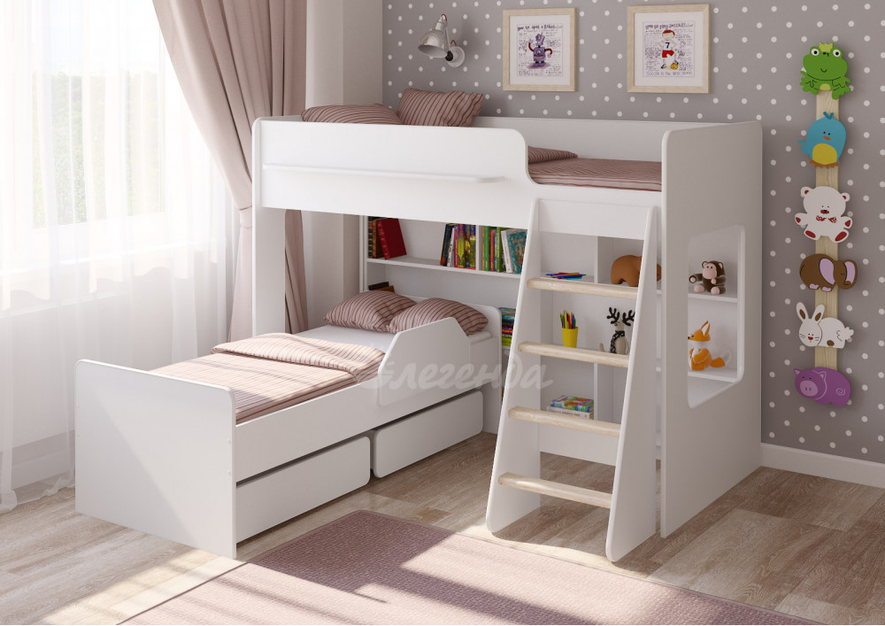 Двухъярусная кровать Легенда 26.2 белая - компактный комплект мебели по привлекательной цене.